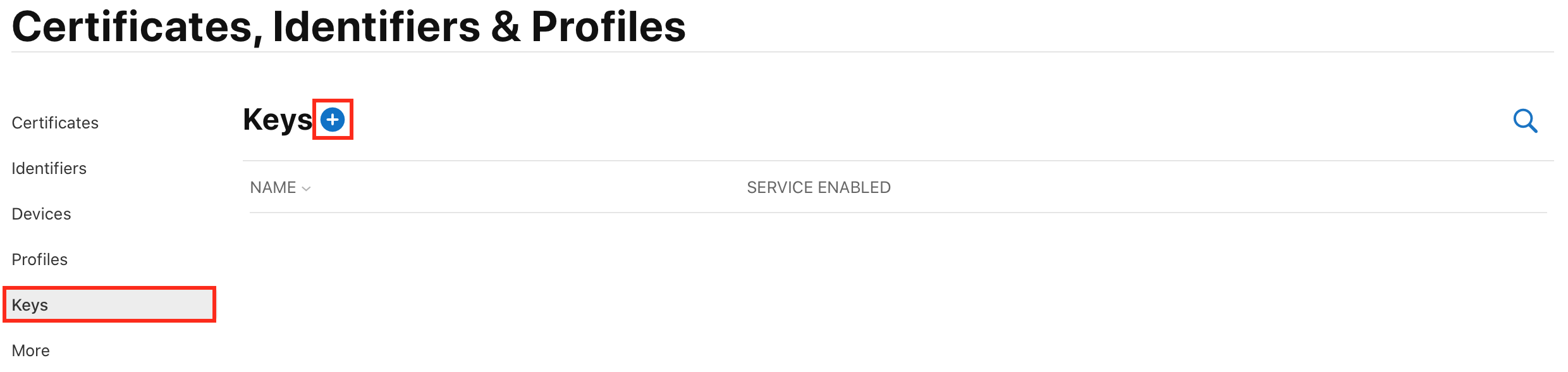 "Keys" 메뉴에서 "+" 버튼을 클릭해주세요.